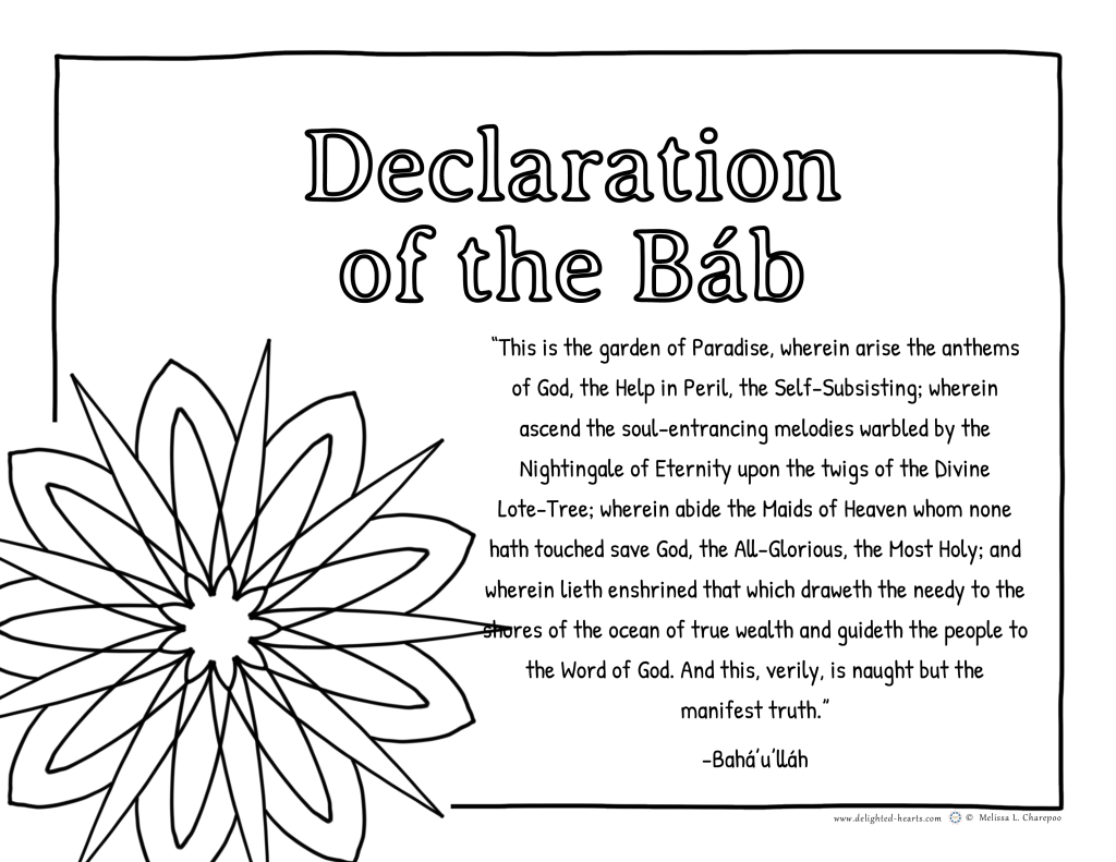Happy to share this gift coloring page to celebrate the Declaration of the Bab!